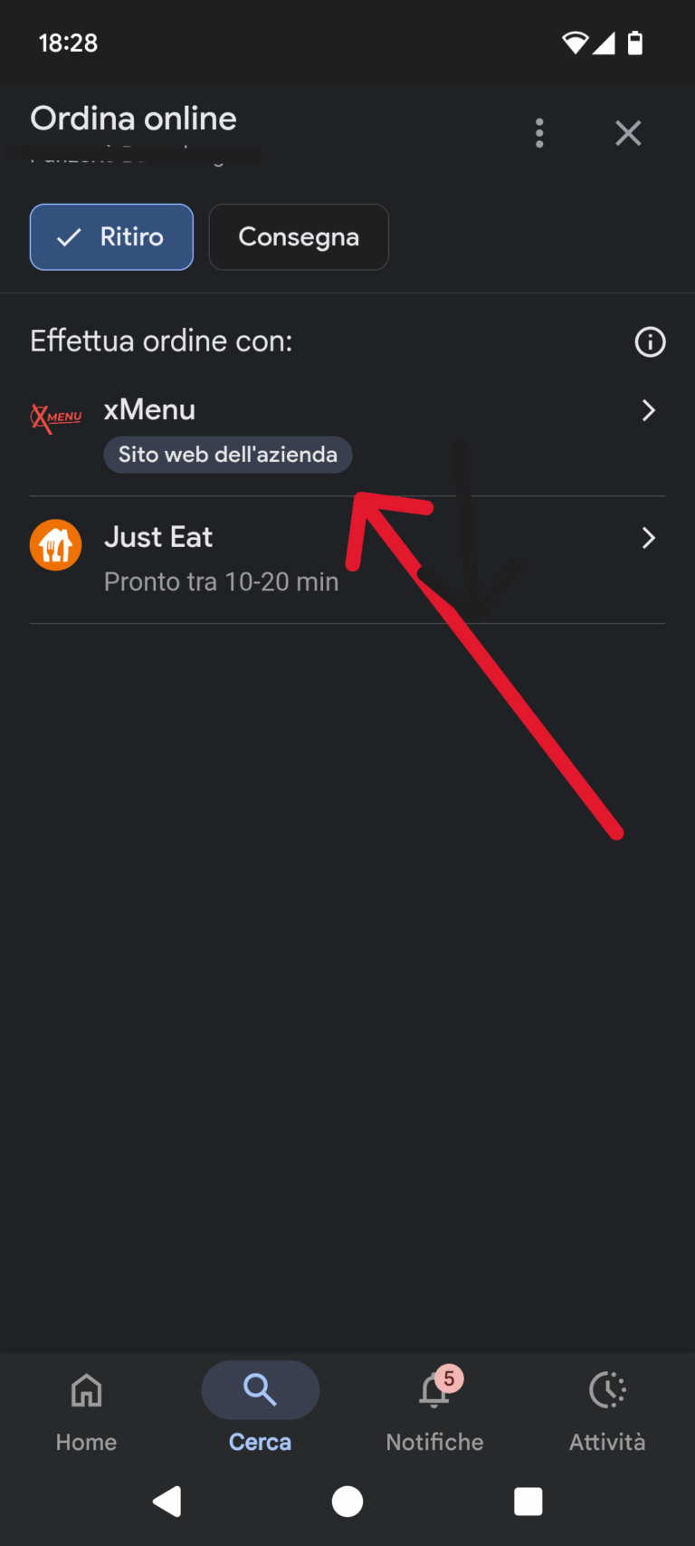 È possibile che sulla tua scheda Google ci siano anche altri “fornitori di servizi” come JustEat, Glovo o Deliveroo.